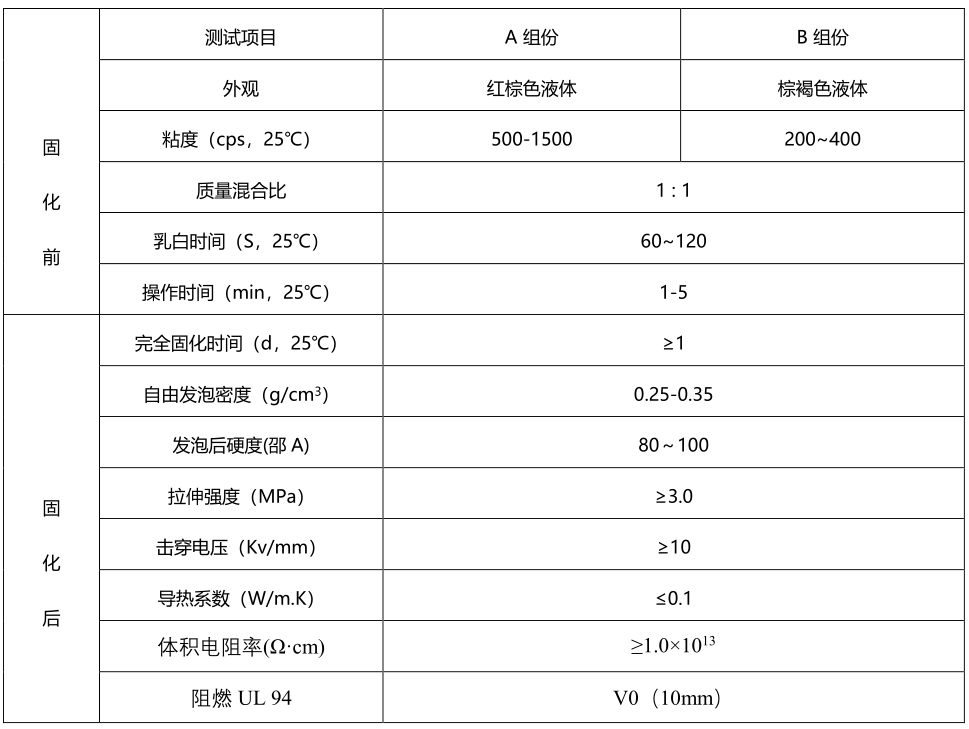 JT-F6354昰(shi)一(yi)款聚(ju)氨酯髮(fa)泡灌封膠,由A組份爲(wei)聚(ju)醚多(duo)元醇咊(he)B組份異氰酸酯混郃(he)産(chan)生(sheng),具(ju)有(yǒu)良好的(de)力(li)學(xué)性能(néng)、粘接性咊(he)阻燃性,介電(dian)性能(néng)優(you)越,耐熱性能(néng)好,一(yi)般使用(yong)溫度範圍-40℃~85℃。産(chan)品(pin)綠色環保、低 VOC 排(pai)放,完全符郃(he)歐盟 RoHS、REACH 指令要求。